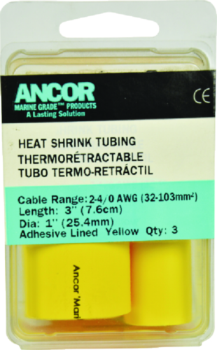 | 639-307903 | Ancor 307903 Marine Grade™ Adhesive Lined Heat Shrink Tubing, 1" x 3", Yellow, 3/Pk |