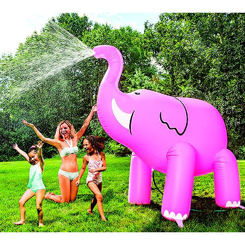 Let that complex-thingee-with-the-spike and the tsss-tss-tsss-tsss-doohickey stick to the basics-growing grass. Because when summer heat waves come around, there's a bigger, better, and funner option for the kids. Enter our Ginormous 7-foot tall Elephant Yard Sprinkler! It's the missing piece to that epic birthday, pool party, BBQ, or family reunion you've been planning (or dreading).We made it super-simple to use, too. Just inflate it, and connect a standard garden hose. Secure it to the lawn using the included anchor kit (Pink model only), turn on the water and voila!…water sprays out of the elephant's trunk, keeping the kids cooler than an air conditioned gift shop at the zoo. Even better, you don't have to feed this one 150 lbs of hay every day. The inflatable design also means that it's lightweight, easy to move, and deflates for compact storage in the off-season. over 7 feet tall!sprays water out of its trunkconnects to any standard garden hosejust inflate it, then turn the water onanchor kit included (Pink version only)air valve features a wide-mouth cap for fast deflationgreat for birthday parties, heat waves, poolside entertainment, 4th of July and more!easy to wipe down, inflate/deflate, and store