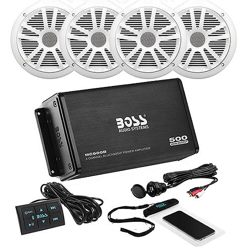 Boss Audio Ask904B64 Weatherproof Amplifier & 6.5 Speaker Package, White Speakers - Ask904B.64 - 153-Ask904B64F1