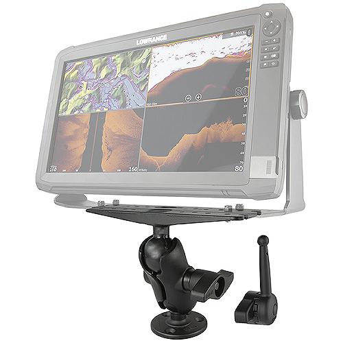 A 3.68" diameter round base, double socket arm and 11" x 3" rectangular plate. The round base has pre-drilled holes, including two holes at 180° and three holes at 120°. The plate has different combinations of pre-drilled holes which will match up to many electronic devices and mounts, including Marine GPS, CB Radios, Ham Radios, Gimbal Brackets and more.Includes the RAM Hi-Torq™ Wrench; designed to give an extra tight grip with the knob on "D" size ball arms and mounts. Ideal when using the RAM mounts in cold weather or if you just want extra torgue.