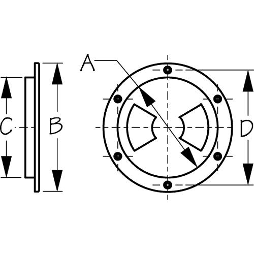 354-3361521Seadog 3361521 Smooth Finish Quarter-Turn Deck Plate, White, , A: 5-1/2" , B:6-3/4", C:5-3/8", D:6-1/8"
