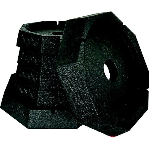 SnapPads attach permanently to your RV leveling jacks, so you don't have to carry around blocks of wood or plastic blocks to level your RV or Motorhome. Simply "snap!" them on one time, and you're all set. Hardy recycled rubber construction. SnapPad XTRA LUX: For Fifth Wheel that has two 12" and four 9" round jacks. Set of 6 rubber boots. Adds 1" of thickness to jack foot. Snap-on a set of XTRA XL LUX to your rig and eliminate all of your leveling hassles. Permanently. 9" round is 11" total width. 12" Round is 13.75" total width.