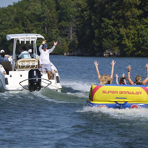 Upgrade your boat for tubing, wakeboarding, and waterskiing with the TurboSwing tow bar. This heavy-duty, stainless steel tow system mounts to your outboard motor bracket and elevates the tow rope above the wake and features a patented pulley system that moves freely along the curved bar, reducing jerks and maintaining steady tension during turns and takeoffs. Easy to install yourself using the existing hardware on your motor-no special tools required. For Single Engine Applications. Universal motor bracket installation - fits virtually any brand of outboard motor.Corrosion resistant 316 stainless steel tow barPulley system affords smooth, consistent pullsTow ropes clip quickly and easily to TurboSwing pulley systemCan accommodate multiple riders Note: A second EZ pulley (#TS-EZP-33mm) is Required for multiple riders.Tow bar can be quickly removedPackage includes; 1 Tow bar, 1 EZ pulley and 1 Mounting kitPlease refer to: https://turboswing.com/configurator for engine fitment.