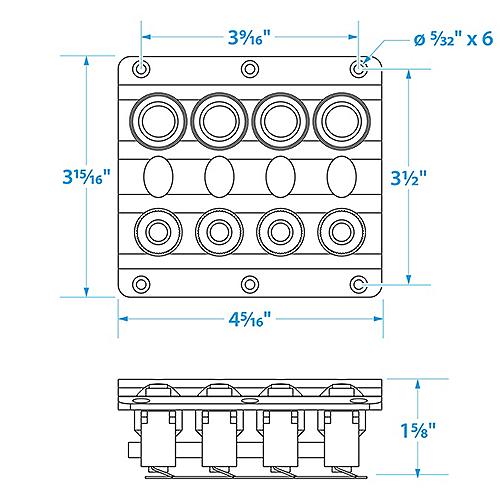 Seachoice LED 12V Distribution Panels help you organize your low-voltage electrical application switches into one distribution panel. The rocker switches illuminate red when turned on. Seachoice is committed to delivering quality marine accessories and OEM replacement parts to satisfy fishing, boating and watersports enthusiasts worldwide. Seachoice is run for and by boaters, offering a wide-ranging product line while remaining affordable. Helps you organize your low-voltage electrical application switches into one distribution panelRocker switches illuminate red when turned onIncludes (1) 4 amp, (1) 6 amp, (1) 8 amp, and (1) 10 amp switchMolded black plastic won't rustPre-drilled with countersunk holes to accommodate #8 fastenersPanel measures 4-1/4 inches long x 4 inches wide x 1-3/4 inches in depthIncludes 28 common labelsManufacturer part number 50-12321