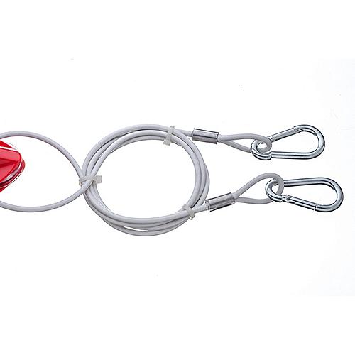 8' usable cable length. Unique design molded high impact plastic float/pulley. Allows easy attachment of ski rope for better towing and boat control. Full 1/4" diameter vinyl jacketed steel cable. Large snap hooks for quick attachment to boat.
