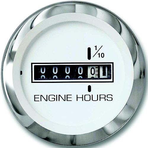 Sierra 65497P Lido Series 2" White & Stainless Steel 10,000 Hour Dial Range Hourmeter Gauge - 65497P - 11-65497Pf1