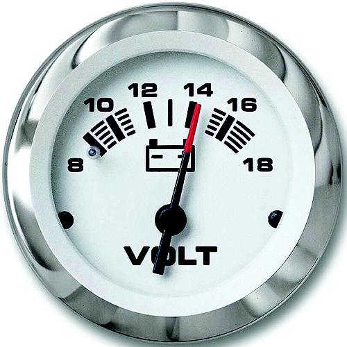 Sierra 65506P Lido Series 2" White & Stainless Steel 12V 8-18 Vdc Dial Range Voltmeter Gauge - 65506P - 11-65506Pf1