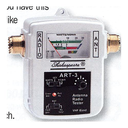 No need to call for a radio check when you have this compact, easy to use, unit on-board. The ART-3 tests receiver function as well as output power and VSWR (antenna efficiency). It is powered by an internal battery or can be connected to ships 12 VDC with the supplied power cable. Battery level can be checked at the flip of a switch.