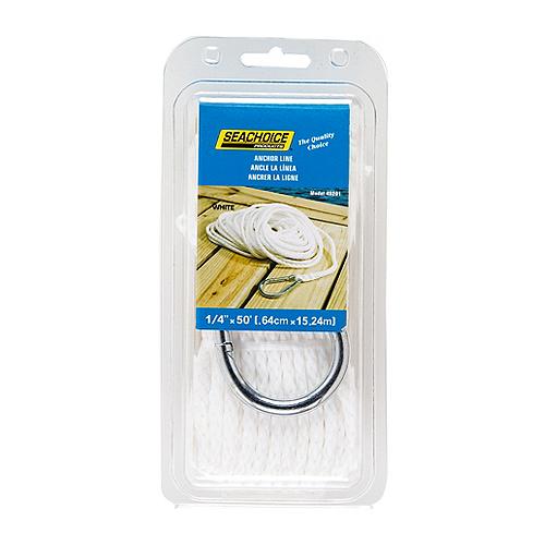 Seachoice 40201 Hollow Braid Polypropylene Anchor Line, White, 1/4" X 50' - 40201 - 50-40201F1