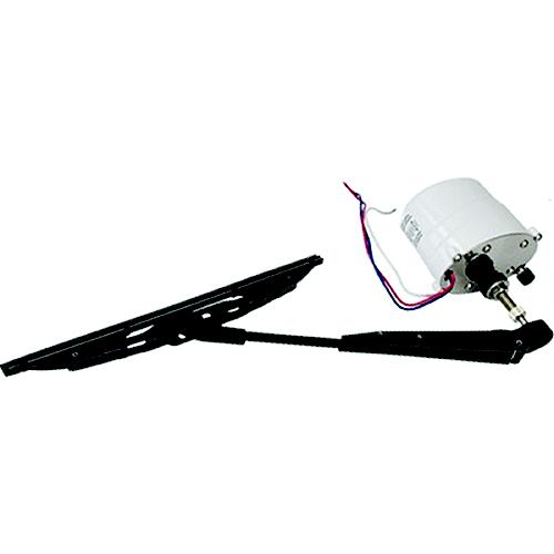 Includes a waterproof frame mount, wiper motor, an adjustable wiper arm (9-1/2"-12-1/2"), and an 11" curved blade. Powder coated aluminum/304 stainless steel construction. IP66 rating. CE approved. 3-year warranty.