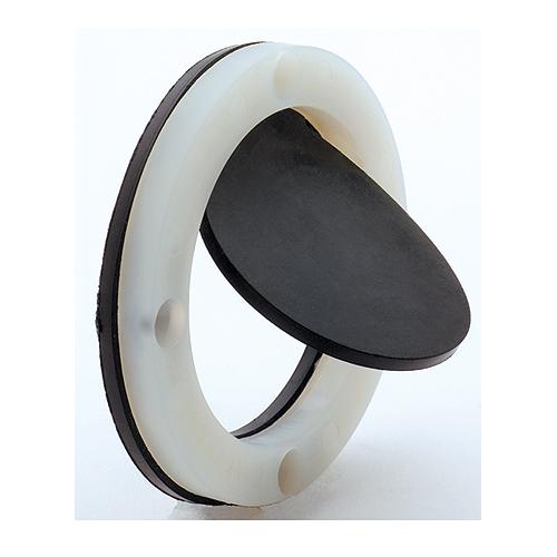 Mounts on transom slightly above water line to provide a water exit for boats with self-bailing cockpits. Flapper valve opens outward to allow water out of boat when necessary but seals back to prevent water from entering. Acetal construction. Accommodates 3875B thru-transom thru-hull connector (screw holes must be drilled for installation). Use as a replacement valve for 3881 thru-transom scupper.Caution: Thru-hull connectors are designed for installation above the water line only.