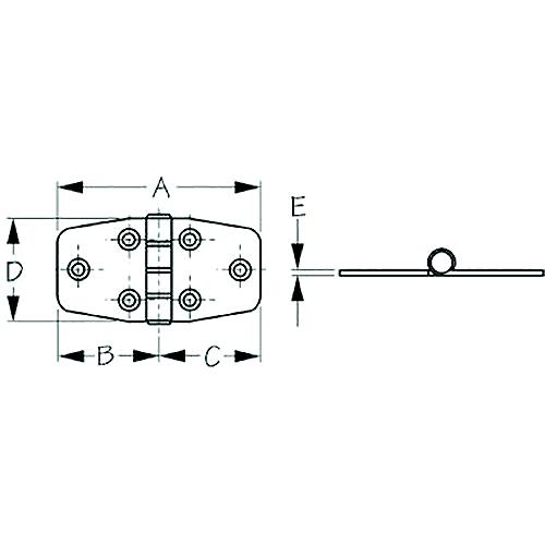 Sea-Dog 2035301 Dampening Door Hinge, #8 Fh, Weight= .11/ .22 A= 2-7/8" , B=1-7/16", C=1-7/16" D=1-1/2", E=1/16" - 203530-1 - 354-2035301F1