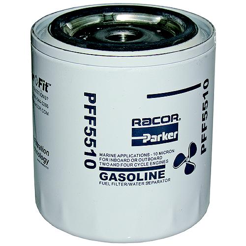 The PFF5510 gasoline fuel filter/water separator replaces standard fuel filters. It fits these popular engine applications with it's 11/16"-16 center threads and features 10 micron Aquabloc® II media to outperform other gasoline fuel filters in inboard or outboard, two or four cycle applications. Performance exceeds all OEM requirements, and is suitable for all low or high pressure injection systems. Provides a durable, high performance filter element that is treated inside and out with a highly corrosion resistant coating to eliminate rust-through.