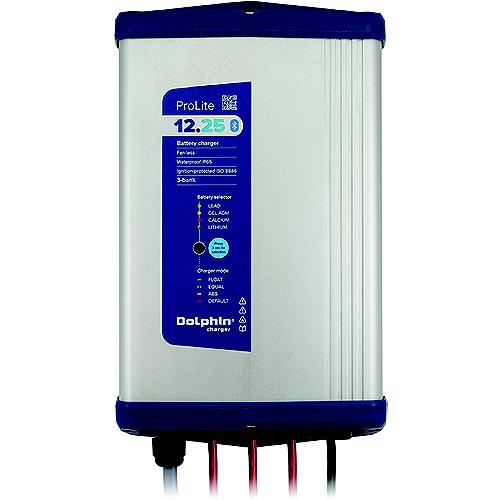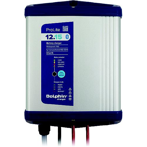 The PROLITE 12v 15Amp and 25Amp chargers are smaller, lighter and more efficient than the competition and boast the latest in connectivity with standard Bluetooth interface. The Dolphin Connect App (iOS and Android) will allow you to monitor and control your charger from your mobile device! Automatically senses and distributes 100% of available charging amps to any one bank or combination of all banks40% smaller and 50% lighter than most competitorsIncludes 6' AC and DC cables and fusingIP 65 Water ResistantISO certified 8846 for use in gasoline boatsWorks with any battery technology on the marketWill charge from 0 VDCBluetooth Interface92% Super Efficient