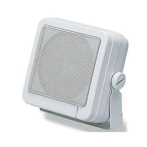 4-inch deluxe external speaker with Mylar® cone. Compact white plastic cabinet for protection against moisture. Input power up to 8 watts (RMS) Comes with a swivel-action mounting bracket, hardware mounting kit and six feet of cable with "mini phone" plug installed.