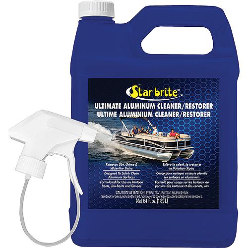 Formulated to clean and restore stained or dull aluminum pontoon boats, jon boats and canoes. The convenient 64 ounce size comes with a sprayer for easy application.