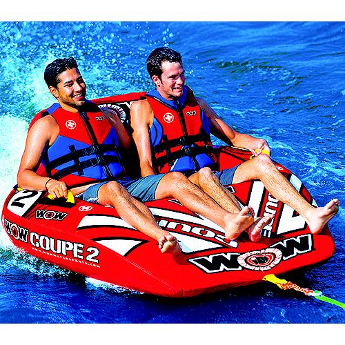 The Coupe Series is another WOW take on an old design. We took out the seat dividers on the basic cockpit tube so that we could add our drop bottom design. This turns your basic cockpit tube into not only a towable that is fast and balanced over the wake and in the whips, but also a comfortable and relaxing floating lounge that will be just what you need after your exciting ride. Hot rod red design. Try the Coupe 1, 2, or 3 rider towable/lounge and save on space in your boat by taking just one item with you instead of two.New Innovative SECURE COCKPIT SEATING™ with backrest and ergonomic slanted leg rest design for comfortable riding or lounging The new slanted leg rest design allows for the rider to naturally ride or lounge in a comfortable secure position Drop speed bottom allows for EZ fuel efficient towing with less drag on the boatHeavy-duty tow system construction featuring front tow pointHeavy-duty partial nylon coverHeavy-duty PVC bladdersWOW's custom red hot rod racing stripe design with billboard graphicDouble webbing foam handles with EVA foam knuckle guardsZippered valve coversSpeed Valve for fast inflation and deflationHeavy-Duty partial nylon cover tube makes for a great river tube while lounging