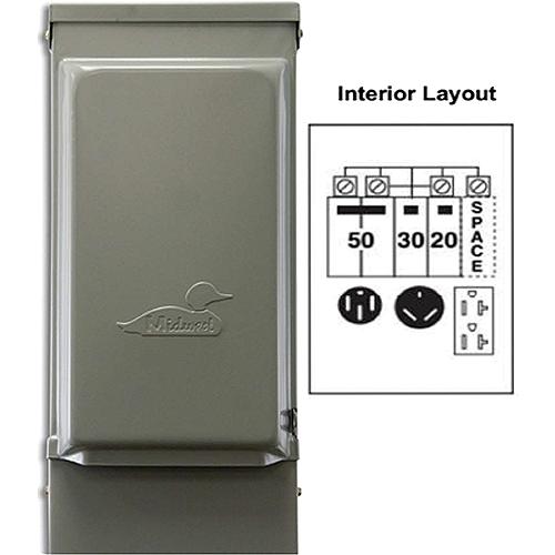 Parallax U075Ctl010 80A 120/240V Outdoor Rv Power Outlet With 20A-1 & 30A-1 & 50A-2 Pole Breaker & Tt-30R & 5-20R1 Gfl & 14-50R Receptacle - U075Ctl010 - 267-U075Ctl010F1