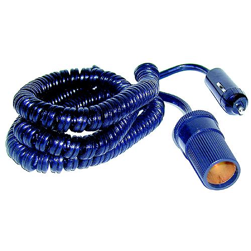 This cord stays neat and tangle free at all times. Great for 12 volt lights, phone chargers, etc. Consists of a fused cigarette lighter plug, 15' coiled 18 gauge wire and 12 volt receptacle. Do not exceed total draw of 5 amps.