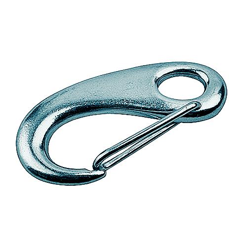 The spring gate snap hook features a quick connect wire lever gate and torsion spring. Constructed of marine grade 316 stainless steel for maximum corrosion resistance and durability. Simple to release lobster clasp style hook makes them ideal for applications where the snap needs to be frequently removed. Oblong design allows more gate clearance while the rounded edges prevent snagging.