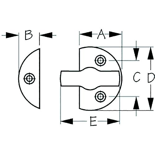 Sea-Dog 2223651 Door Button, #6 Fh, Brass, Weight= .13 A=1-3/16" , B=1/2" C=1", D=1-3/4", E= 1-11/16" - 222365-1 - 354-2223651F1