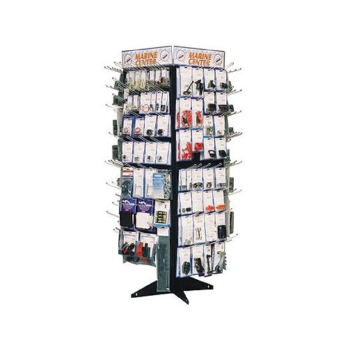 Focus is on Freshwater or Inland Boating. 168 SKUs Merchandisers are available complete with product, back tags, sign, display panel and peg hooks completely set up in a box. A planagram version (P) without plastic panel and peg hooks may also be ordered at a lower cost. Panel dimensions are 16" x 24", 2 panels per side plus 4" for header card. Panels fit Sea-Dog® spinners. Spinner Base with Casters sold separately.