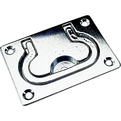 Constructed of chrome plated sand cast brass these Hatch Pulls are ideal for use on doors, hatches, lazarettes, and dock boxes. Handle pivots out to open hatches and lays flush when not in use for a clean appearance. Installs with four #8 FH fasteners (not included).