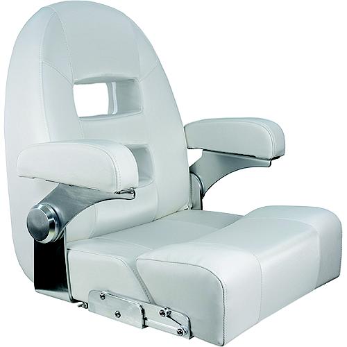 Universal mounting bolt pattern: 5" x 12"Durable frame with high-density foam padding contoured for ergonomic supportCushioned armrests easily flip up and out of the wayFlip-up bolster with a plush cushion for a comfortable leaning positionMarine-grade vinyl is UV-treated, mildew resistant, and waterproofWarranty: 5 Years Substrate/Frame, 1 Year Upholstery/Cushions