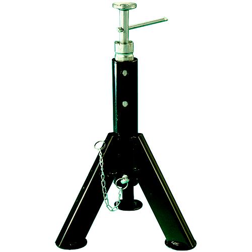 Zinc-plated inner tube and screw assembly. Adjustable from 16" to 30". Quick and easy pull pin. Steel construction - painted black. Electronic Deposition Coated for maximum rust protection. 7,500 lb. load capacity certified.