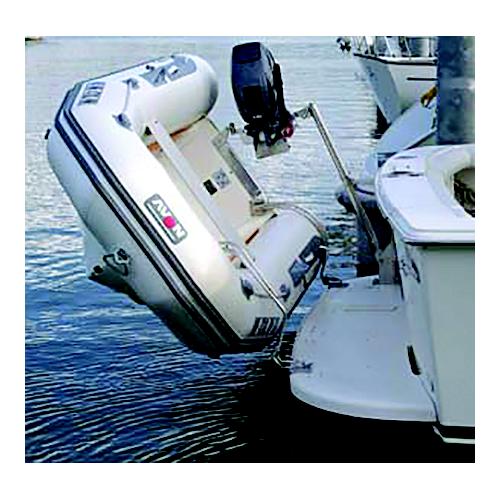 Pick up your dinghy and motor at the same time using our foot operated hoist. Lifting from the Leaver bracket that your dinghy motor is attached to, the dinghy raises at the same time as the motor is swinging out over the swim platform. After the dinghy and motor are brought into the vertical position, the hoist remains hooked up to the dinghy/motor. For hard bottom dinghies. You will need to order the HDRBD202 davit system (not included) and at least one stand-off bracket at the bow of the inflatable for more stabilization. HD-RBD202 required for hoist/leaver installation, sold separately.Weaver worksheet must be filled out as this product is custom tailored.Visit weaverindustries.com for Additional Info & Measurement Instructions