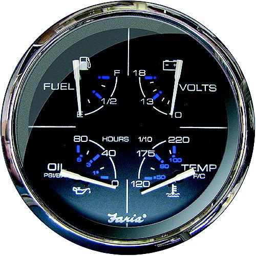 | 678-F33762 | Faria F33762 Chesapeake Black Stainless Steel Multifunction: Fuel Level, Oil psi (80 Psi), Water Temp (120-220 F), Voltmeter (10-18 VDC) |